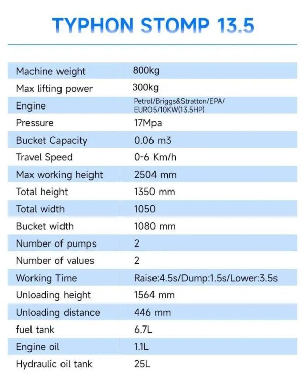 TYPHON STOMP Mini Skid Steer Loader Key Features